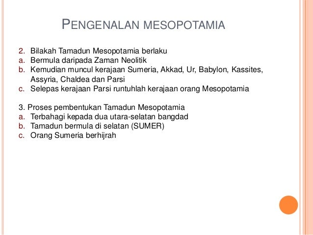 Ciri ciri tamadun mesopotamia . Sumber Gambar : www.slideshare.net